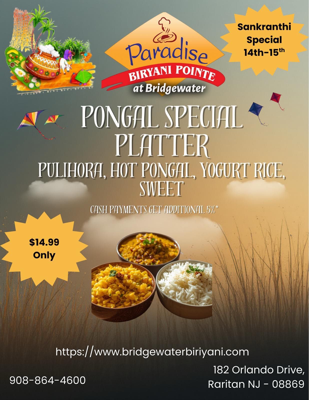Make your way up the carpeted steps for a lovely surprise. This is Paradise Biryani Pointe at Bridgewater, NJ - a unique, authentic Hyderabad Dum Biryani now available at your door step. Besides the Hyderabad's Dum Biryani, many more spicy and hot dishes with ultra-freshness are available.